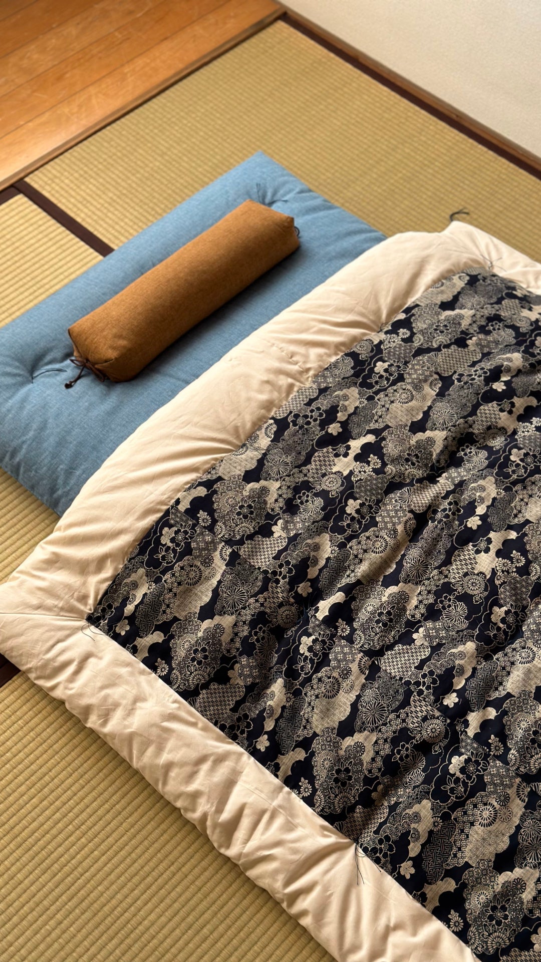 Inspired by traditional kakebuton, this cover features a clean off-white frame with a customizable center panel. Choose your favorite fabric from our cotton collection to suit your style. Perfect for seasonal updates or easy washing—keep your Takaokaya futon fresh and beautiful year-round.