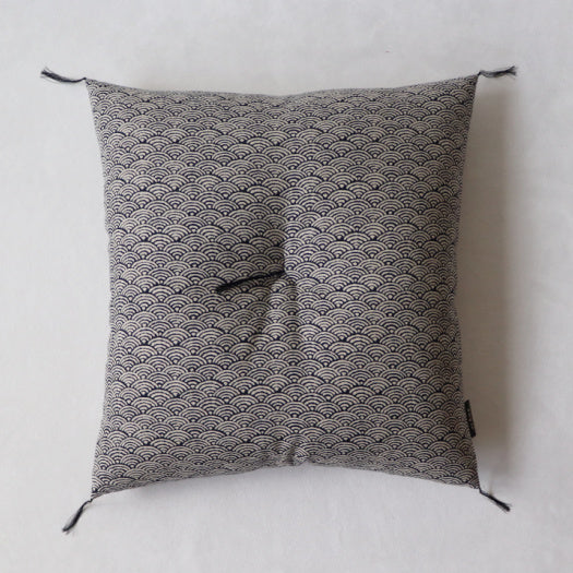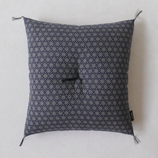 I have been using a floor cushion in my living room for some time now. After a fair amount of research, I decided to elevate my experience by ordering a Kyoto zabuton from Takaokaya, and this Aizome-Fu / Asanoha patterned cover.