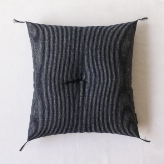 The cover has a beautiful Asanoha (hemp leaf) pattern. The colors are consistent with product photos on the site—a natural fiber color and a very deep indigo, which can pass for black depending on the light. It comes on and off pretty easily, yet still fits the nude Kyoto zabuton it was meant for nicely. The quality of materials and craftsmanship is evident, especially in the stitching. I also LOVED that it came with a thank you card signed and stamped by the craftspeople involved in its construction.