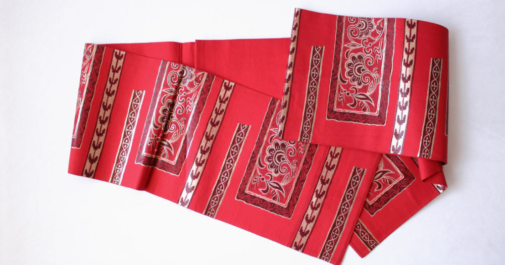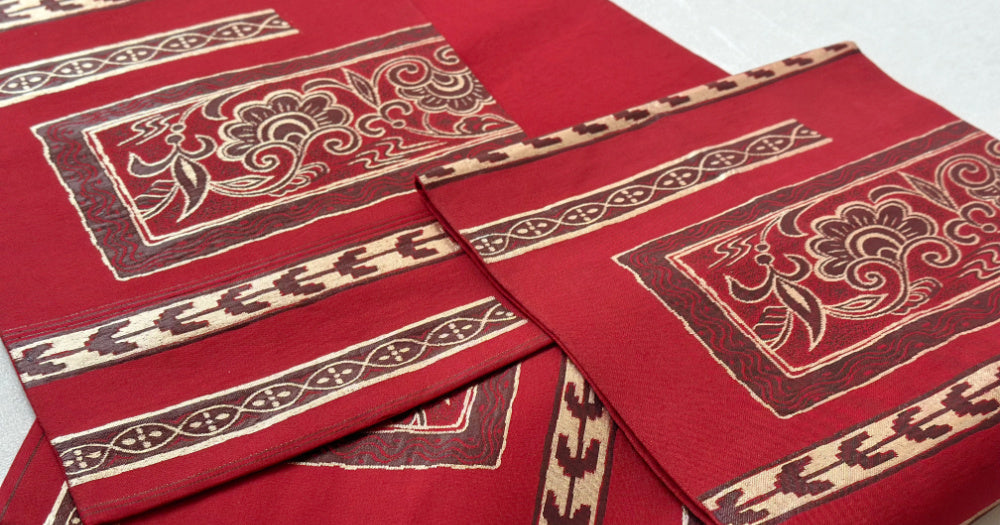 The dominant red color immediately draws attention, exuding energy and passion, while the intricate traditional patterns provide a rich, cultural depth. The weaving is so fine and intricate that the patterns look like they were printed on by wooden blocks.