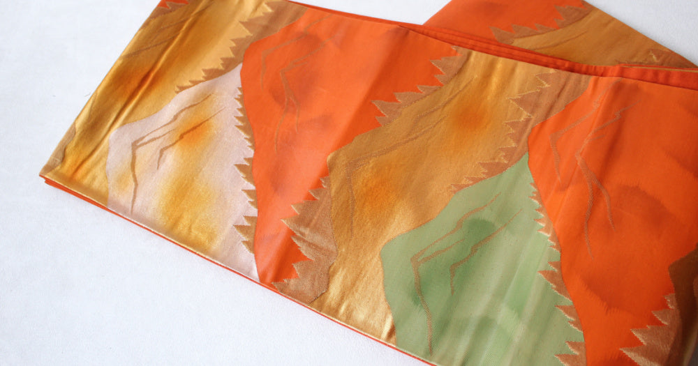 Kimonos and obi belts often depict sceneries of nature, reflecting a love and appreciation for the beauty and tranquility of Japanese landscape, as well as a deep cultural connection between Man and Mother Nature.