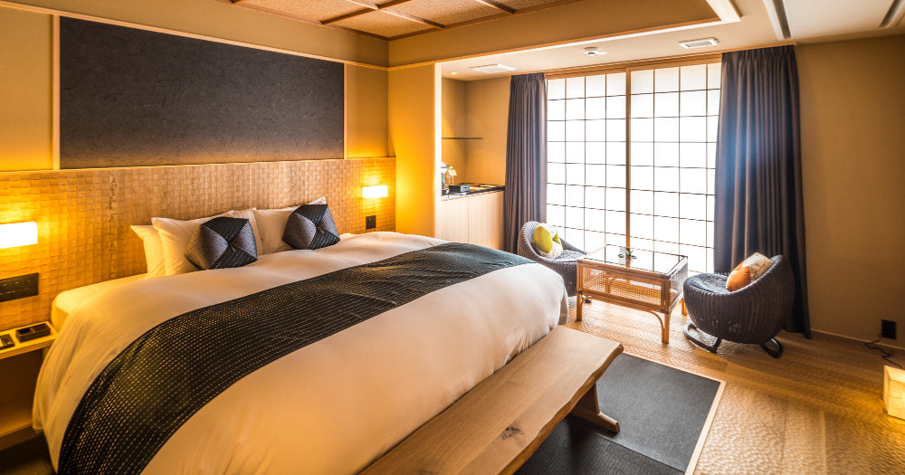 This modern Japanese hotel offers an array of captivating features that showcase the essence and charm of Kyoto. Every room comes with a super king-sized bed, topped with Takaokya Ojami cushions for an extra relaxing and comfortable time of rest.