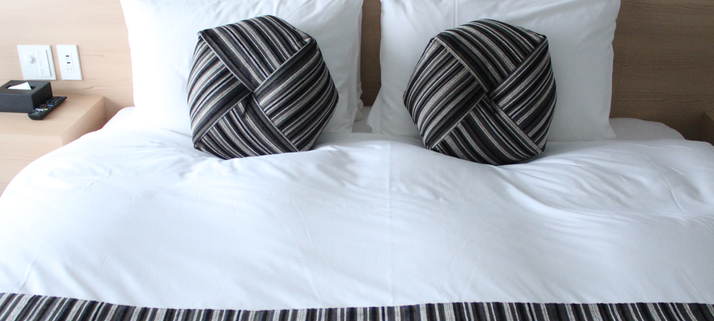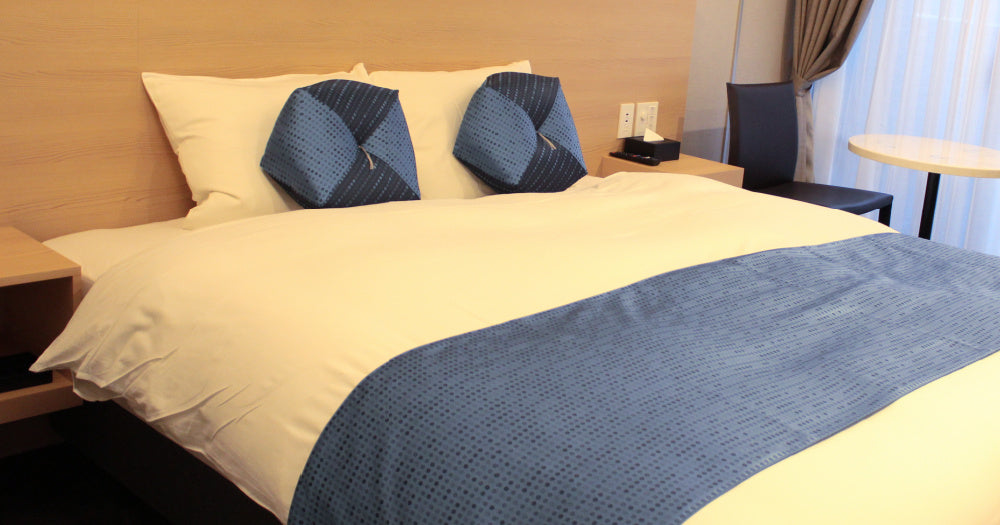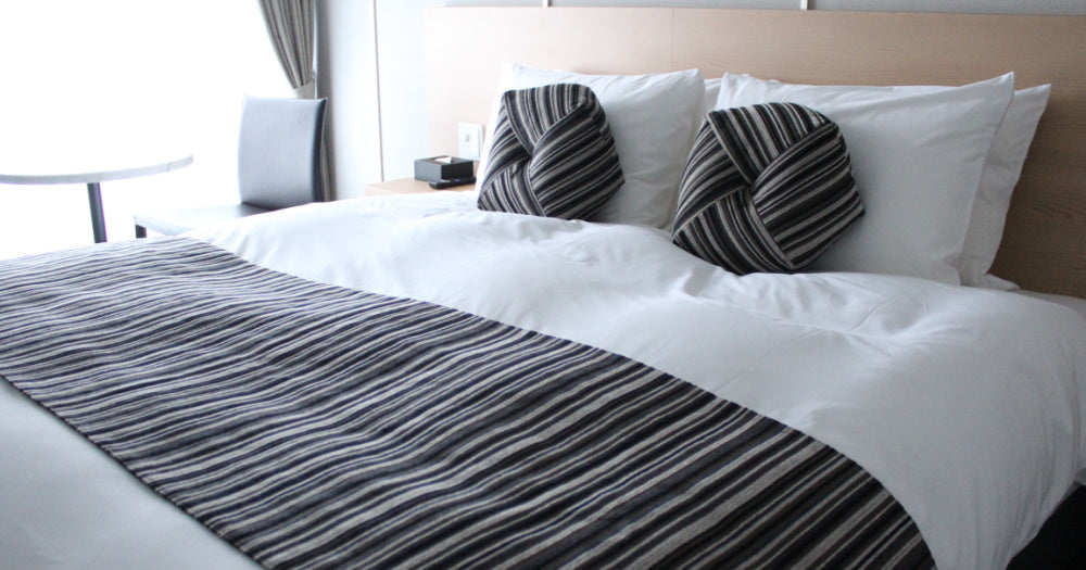 Every room is decorated with matching Takaokaya Ojami cushions and matching bed runners. Depending on the room you are staying in, you can find Ojamis made from different fabric collections.